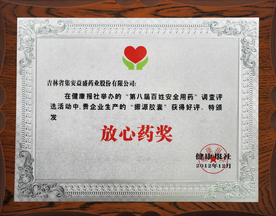 第八届百姓安全用药评选中“振源胶囊”获放心药奖